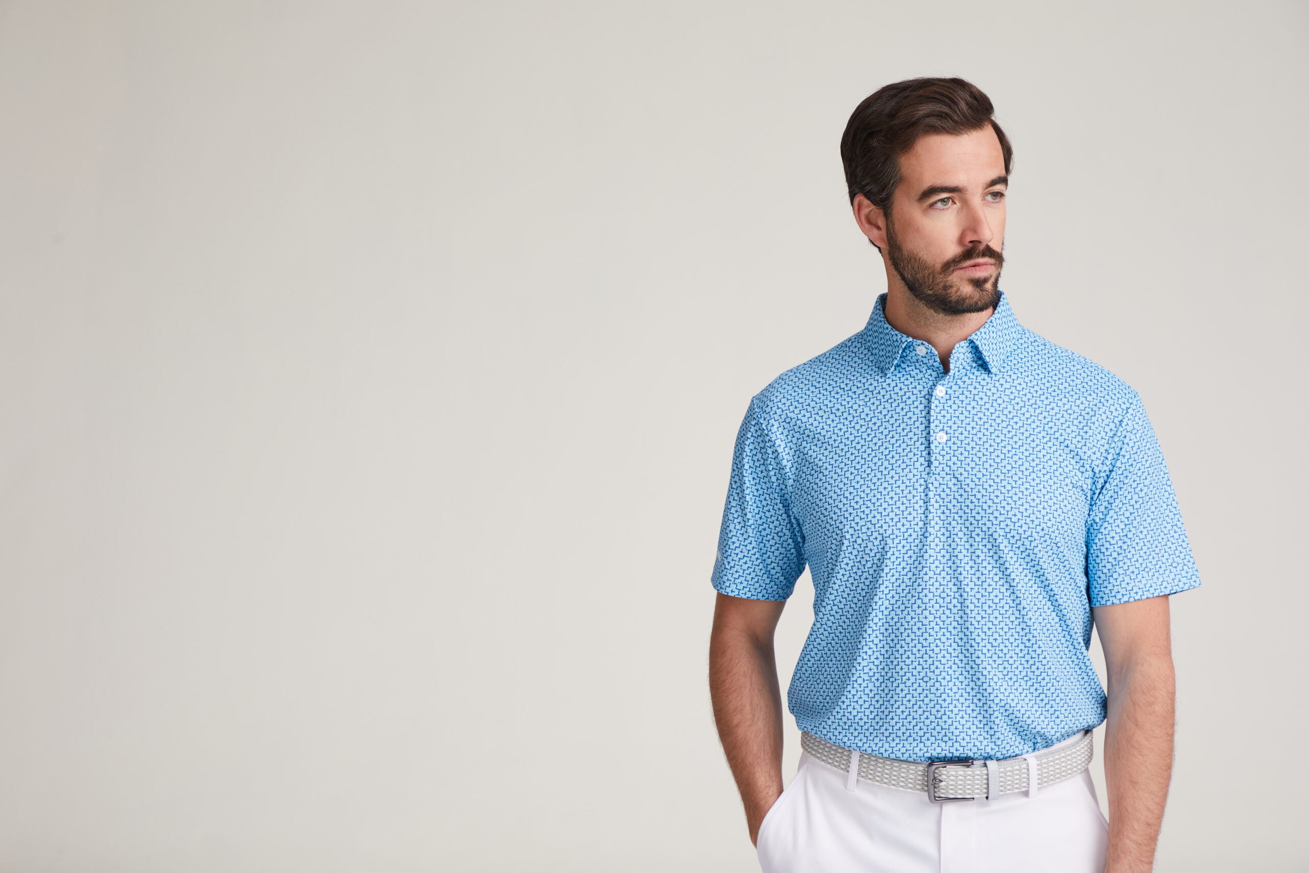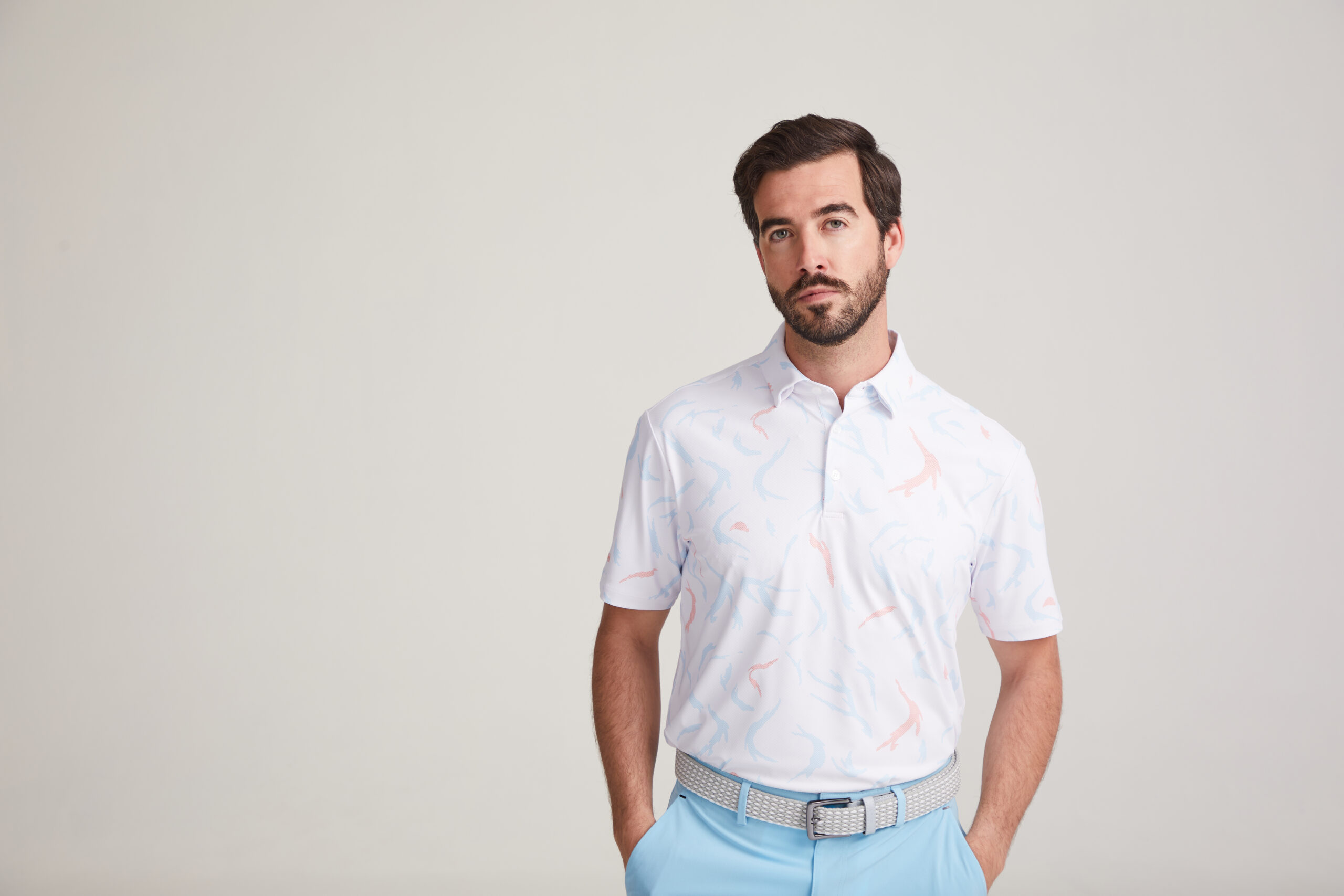 Modern golf wear at its peak, the Ephron Men’s Printed Polo Shirt in Stellar Multi delivers technical precision and striking visual detail for players who lead with style. Featuring the Split Ball print for a bold and structured look, this polo is complete with a concealed button down collar, three button placket, and PING logos for a performance driven edge.