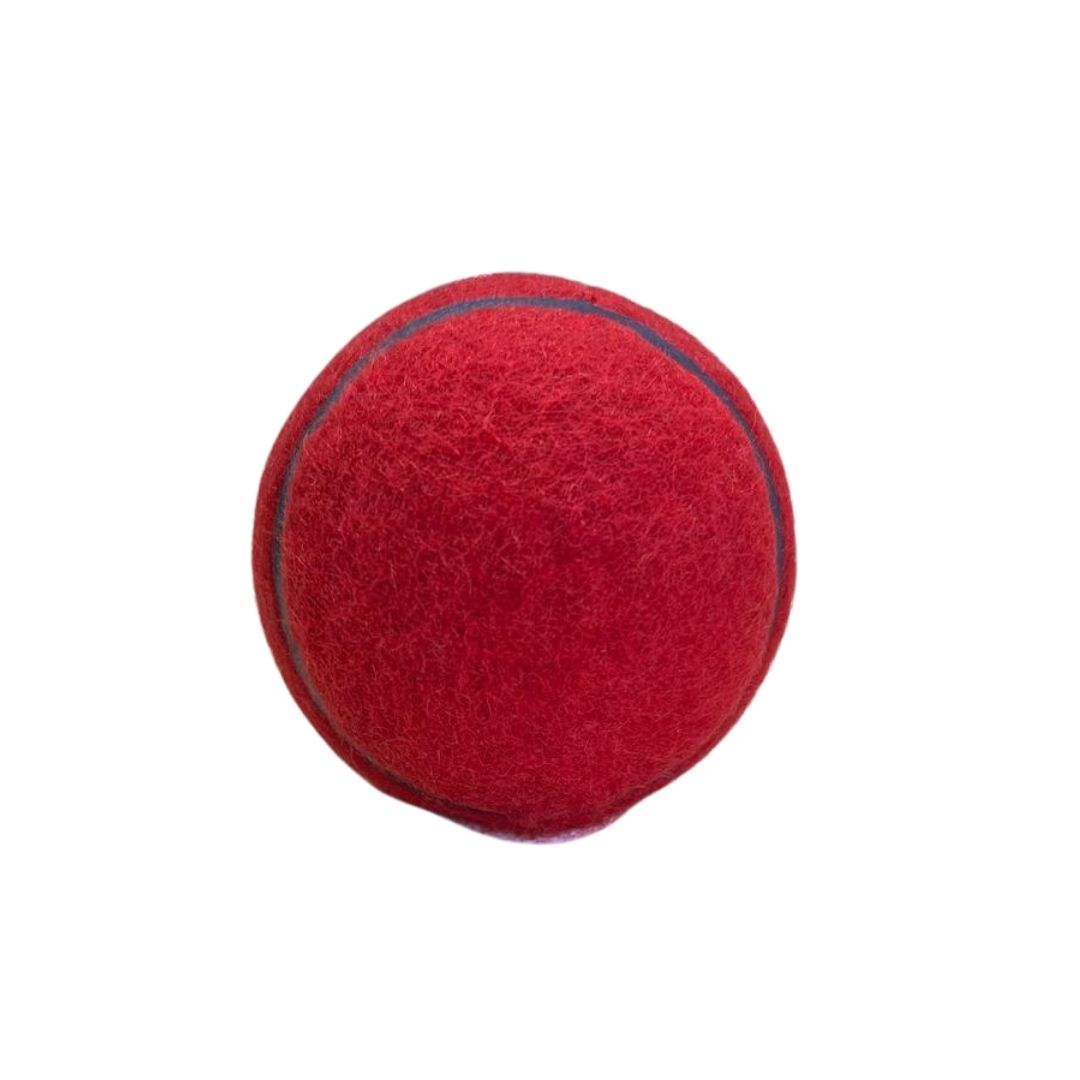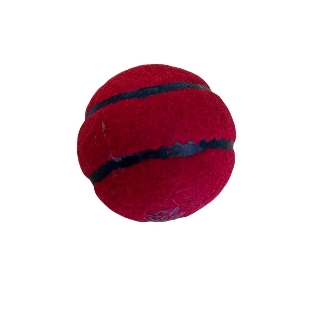 Red felt, rubber ball with cricket seam. Suitable for all ages.